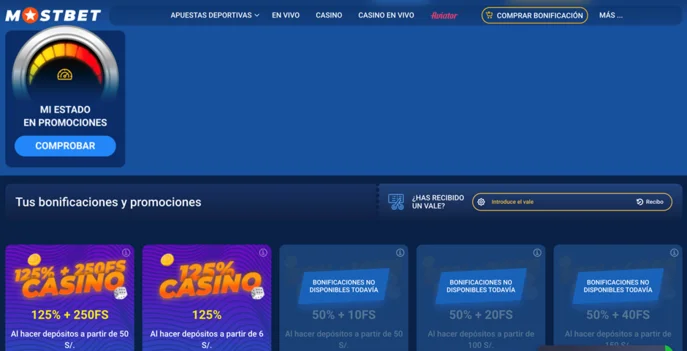 Mostbet Perú ofrece a todos los nuevos usuarios un bono de bienvenida por su primer depósito. Su importe máximo es de 1.400 PEN. Para obtener el bono, es necesario registrarse en el sitio y depositar al menos 6 PEN. Es importante tener en cuenta que los fondos del bono deben ser apostados.